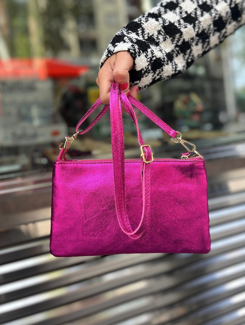 bolso plano piel metalizada fucsia – bgb