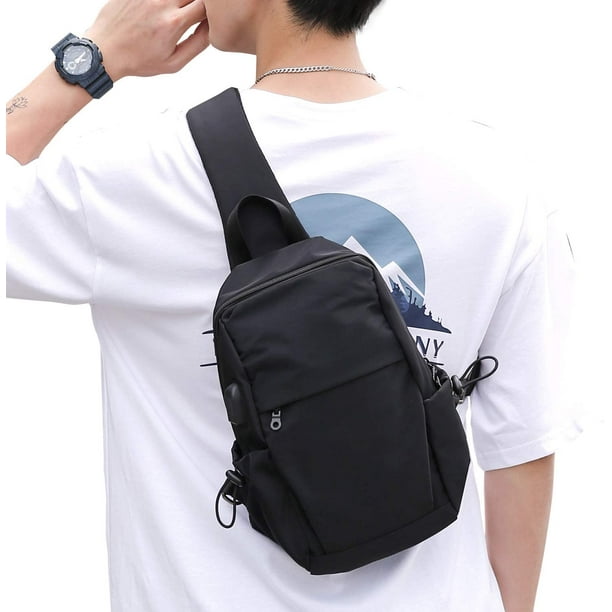 Mochila pequeña negra con bandolera para hombres y mujeres, mochila ligera con una correa, mochila para senderismo, caminar, ciclismo, viajes, ciclismo, puerto de carga USB, nailon MFZFUKR YBY043 | Bodega Aurrera en